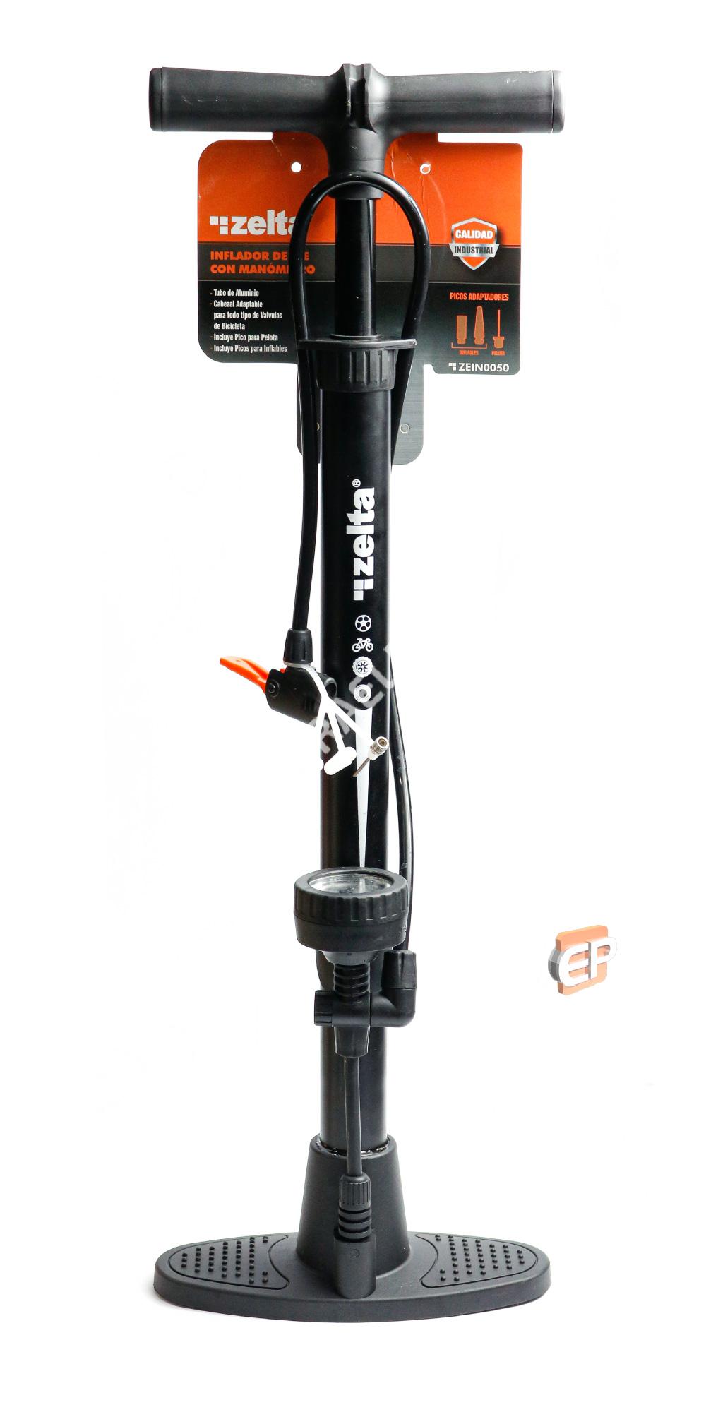 Inflador de Pie con Manometro Multivalvula Negro